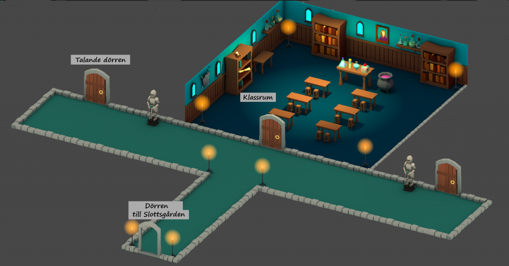 - Gå till klassrumsdörren och prata med Tirlittan.